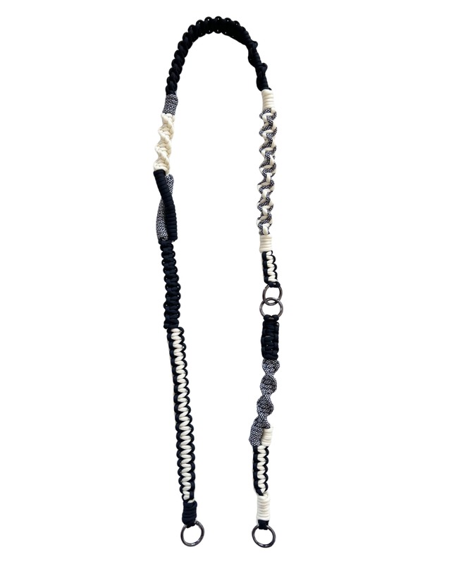 日常の中で、心地よく使っていただけることを大切に制作しています。 シンプルでありながら、さりげなく存在感のある仕上がりです。 ♦︎長さ : 約120cm ♦︎カラー : ブラック ♦︎金具 : メタルブラック ・一つひとつ手作業で制作しているため、個体差も含めて個性としてお楽しみください。 ハンドメイドにご理解の上、ご購入ください。 ・結び終わりや色のつなぎめは極力小さくしていますが、焼き止めをしております。 不良品等ではございませんのでご了承お願いします。 (最後の画像参照) ・必ずshopping guideをご確認の上ご購入ください。 https://macramehika.theshop.jp/p/00001