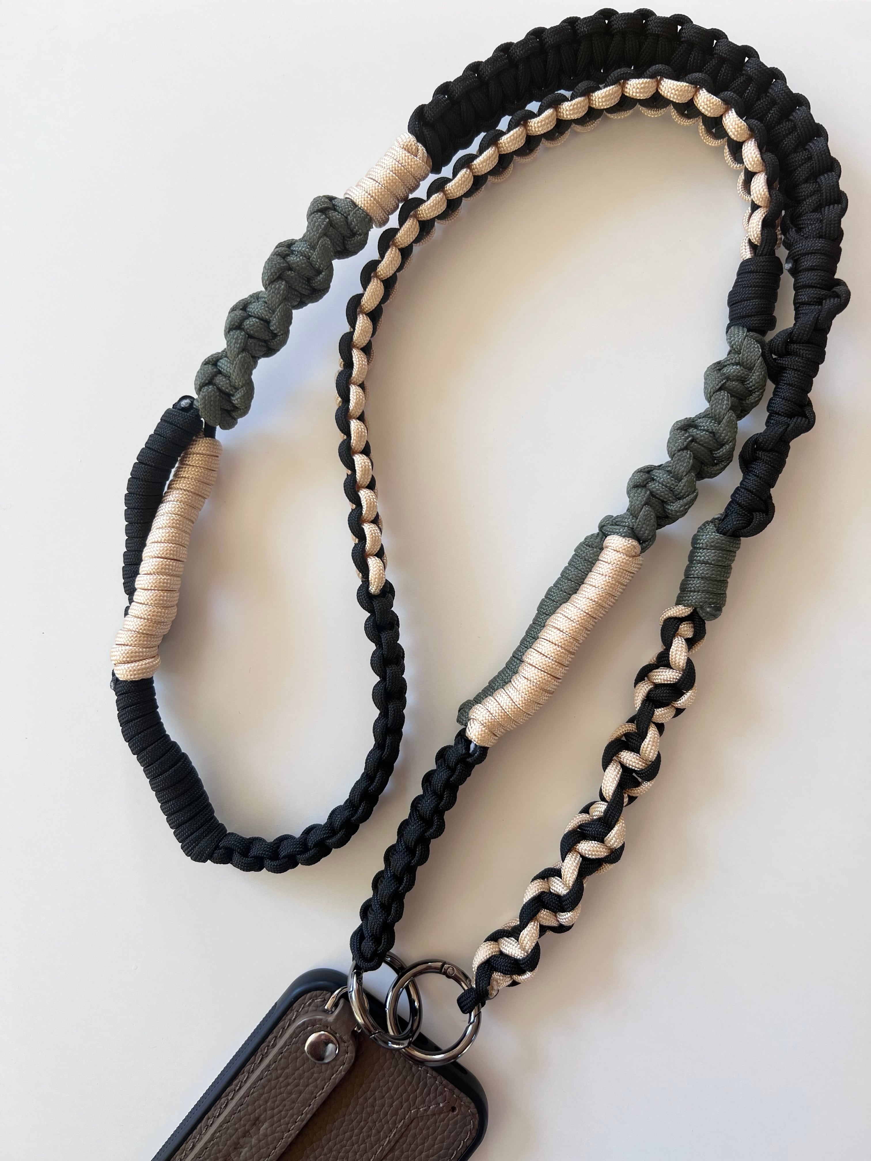 落ち着きのあるカラーの組み合わせが、人気のストラップ。 どんな服装にもなじみやすく、毎日使いやすいデザインです。 ♦︎ サイズ:約130cm