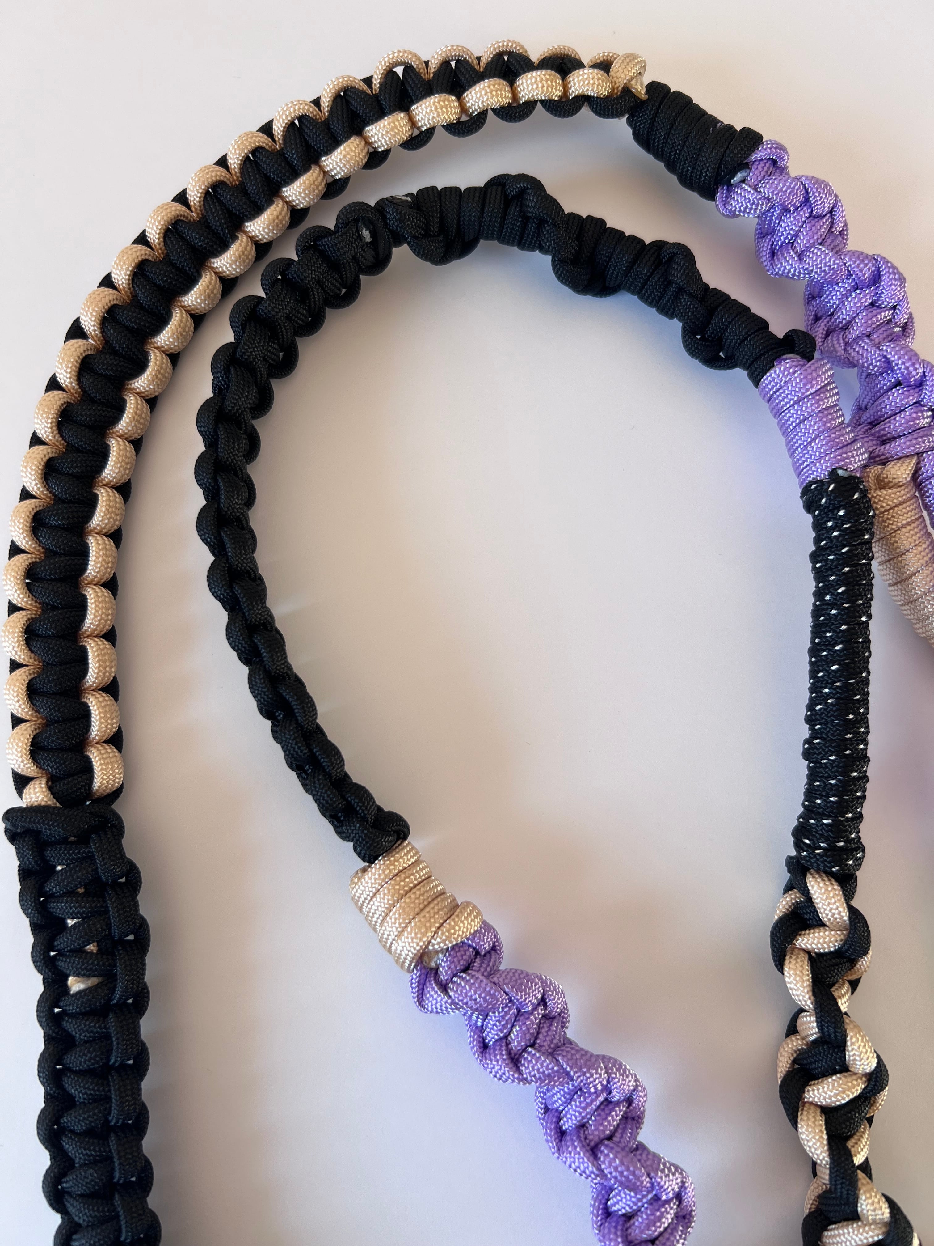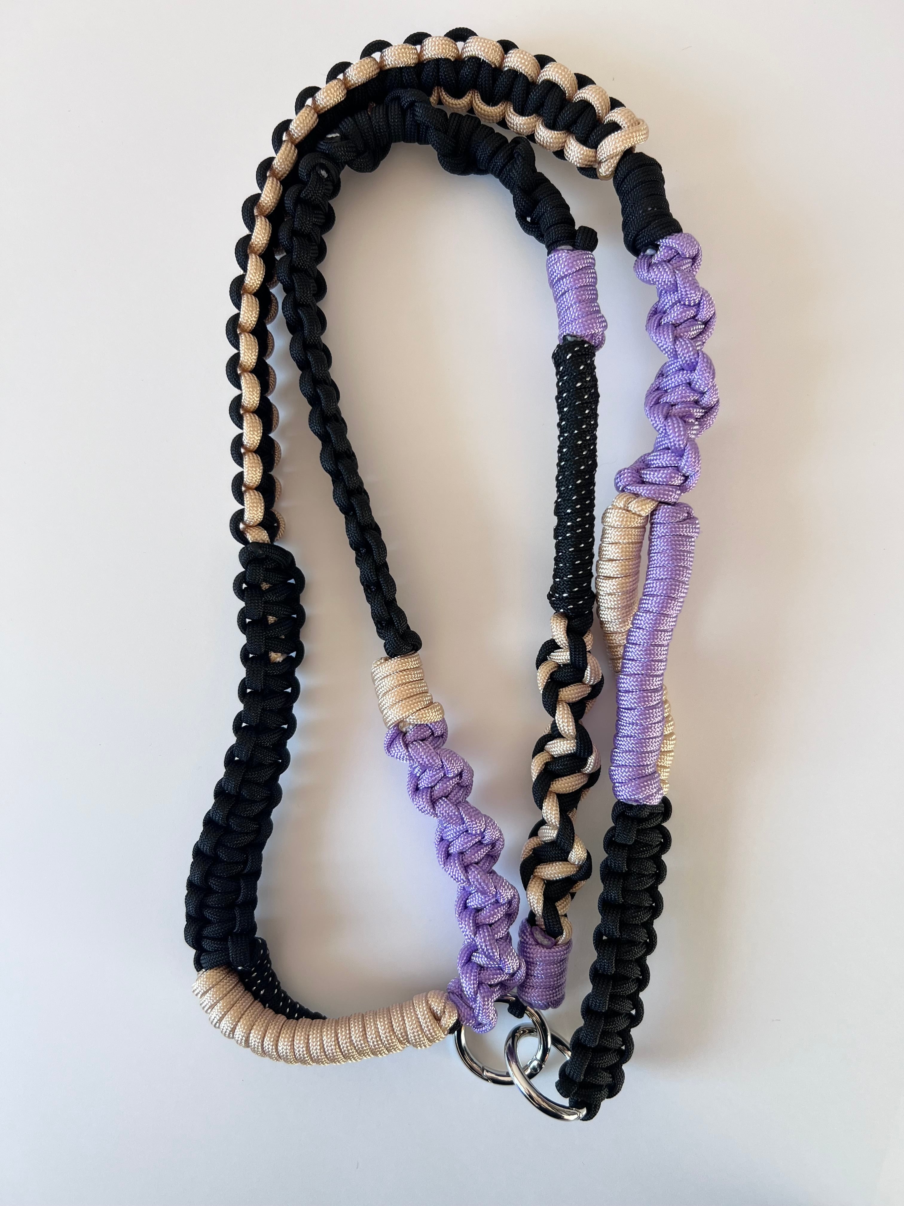 落ち着きのあるカラーに、パープルのポイントカラーが映えるストラップ。 コーディネートにさりげないアクセントをプラスします。 ♦︎ サイズ:約130cm