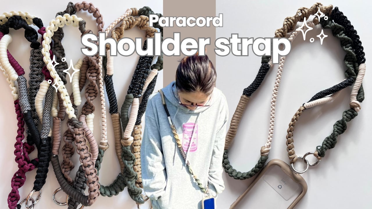 YouTube動画『【初心者OK】基本の結びだけ!パラコードショルダーストラップの作り方』で紹介している作品の制作サポートガイドです。