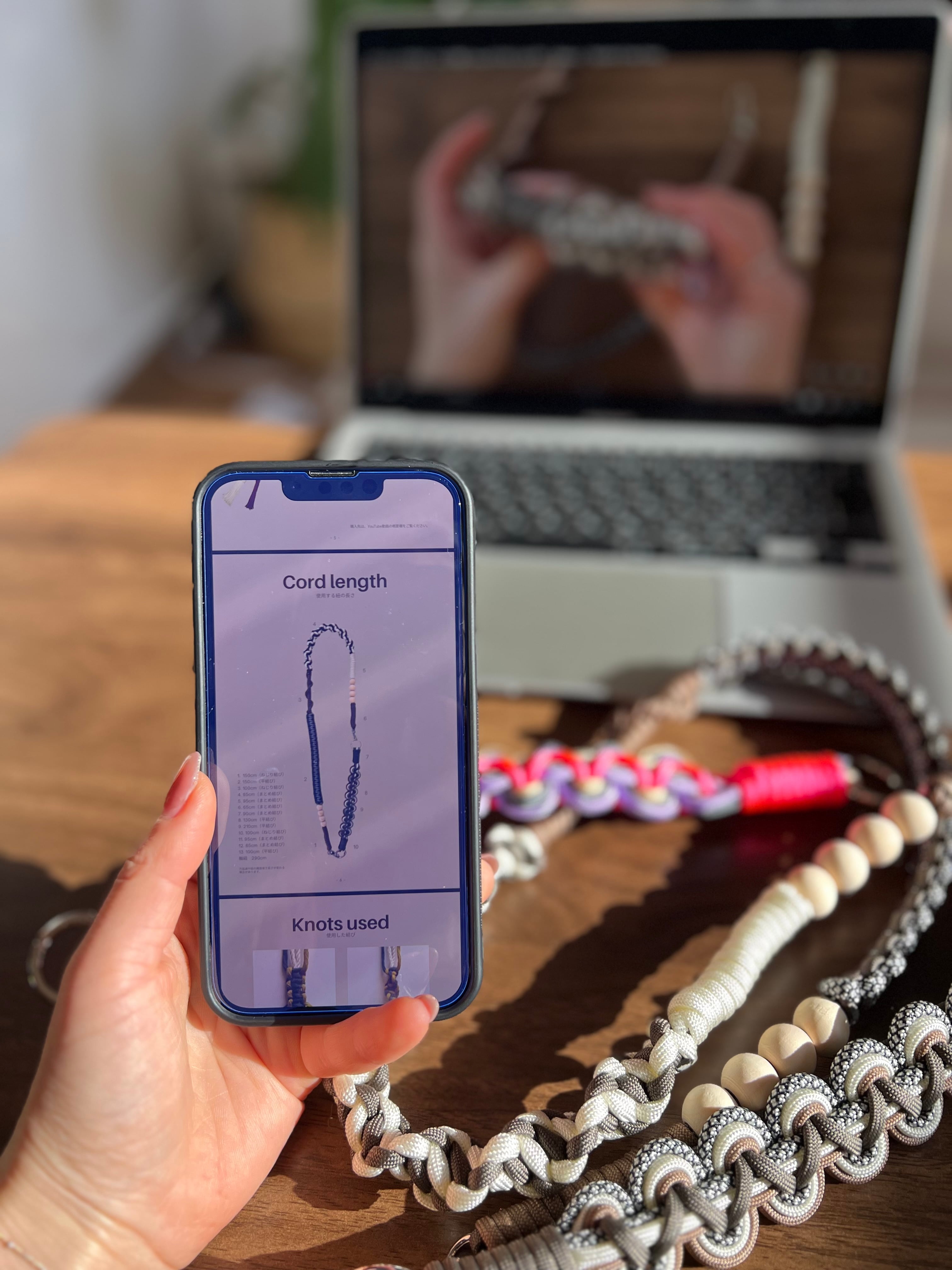 YouTube動画『パラコードで作る♡大人可愛い3wayスマホショルダー』で紹介している作品の制作サポートガイドです。