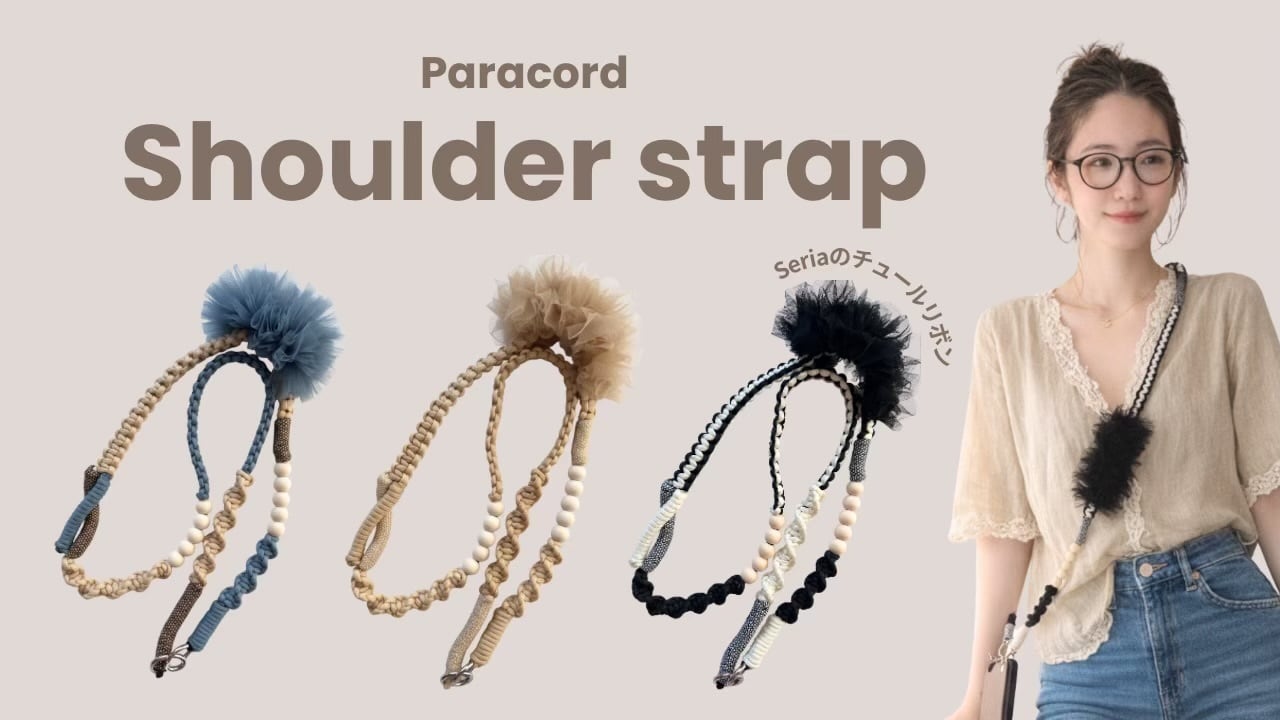 YouTube動画、《 基本の結びだけでOK!セリアのチュールで作る高見えスマホストラップ♡作り方【初心者DIY】》の制作サポートガイドです。