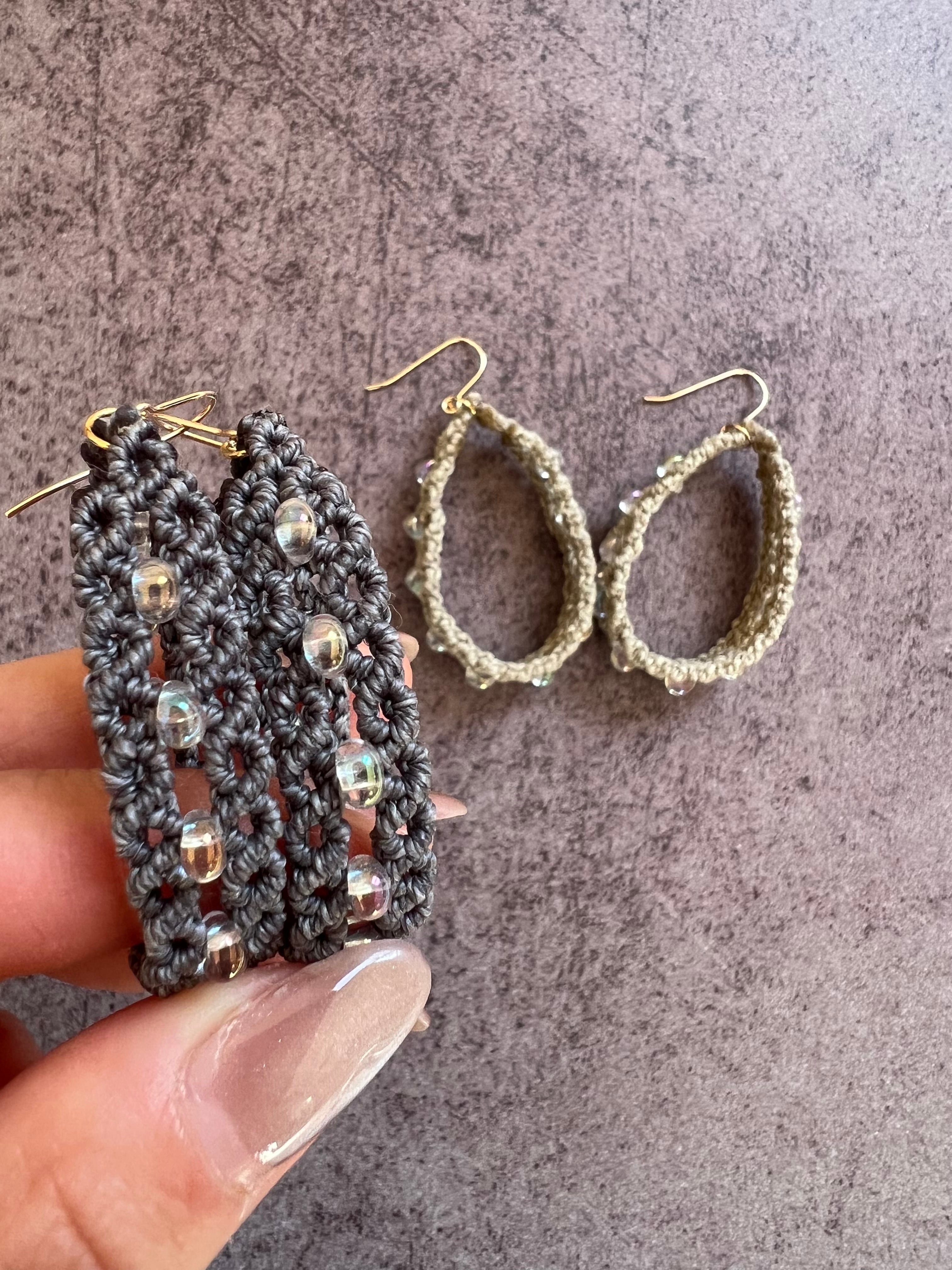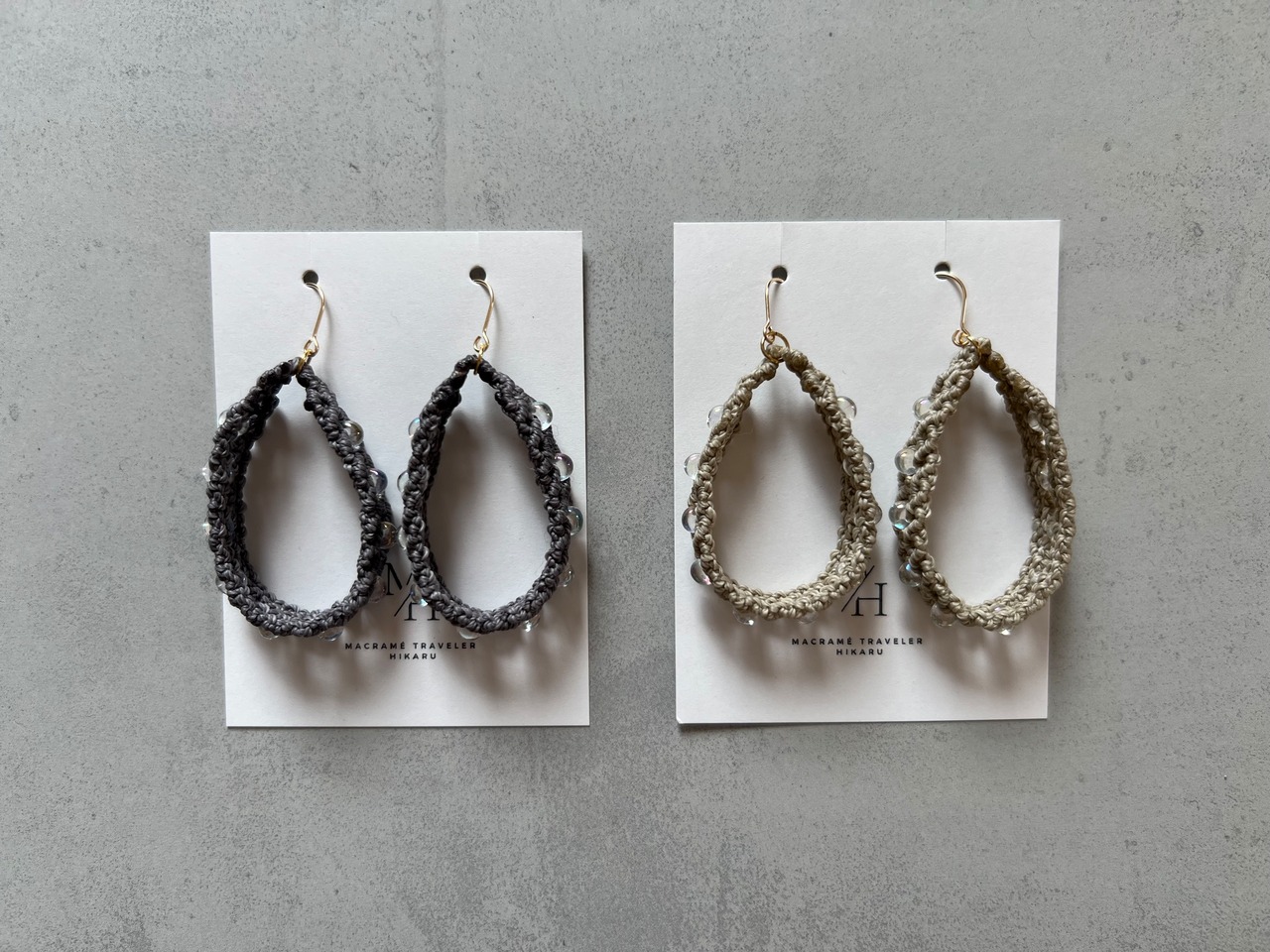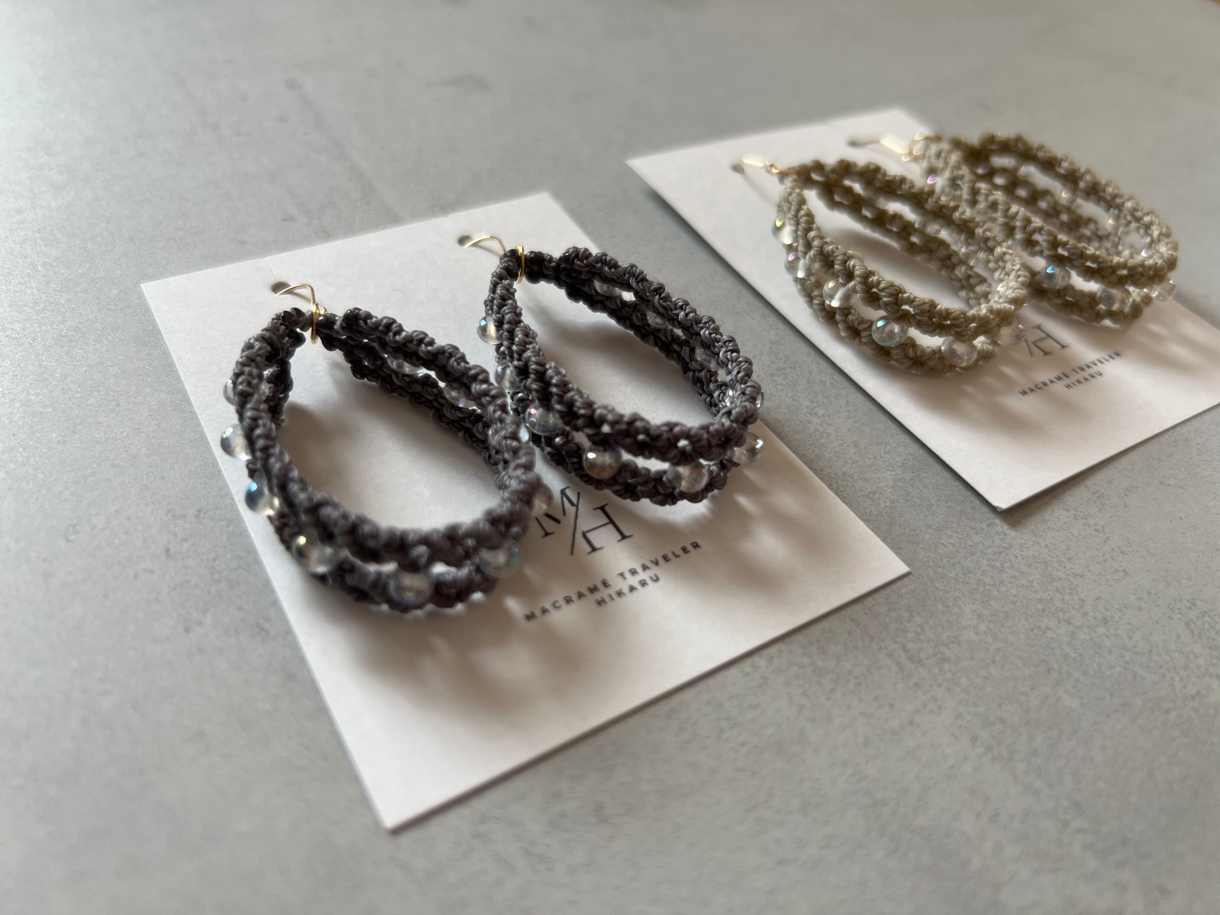 繊細で美しいデザインが特徴のマクラメピアスです。14kgfを使用したその仕上がりは、軽やかさと高級感があります。