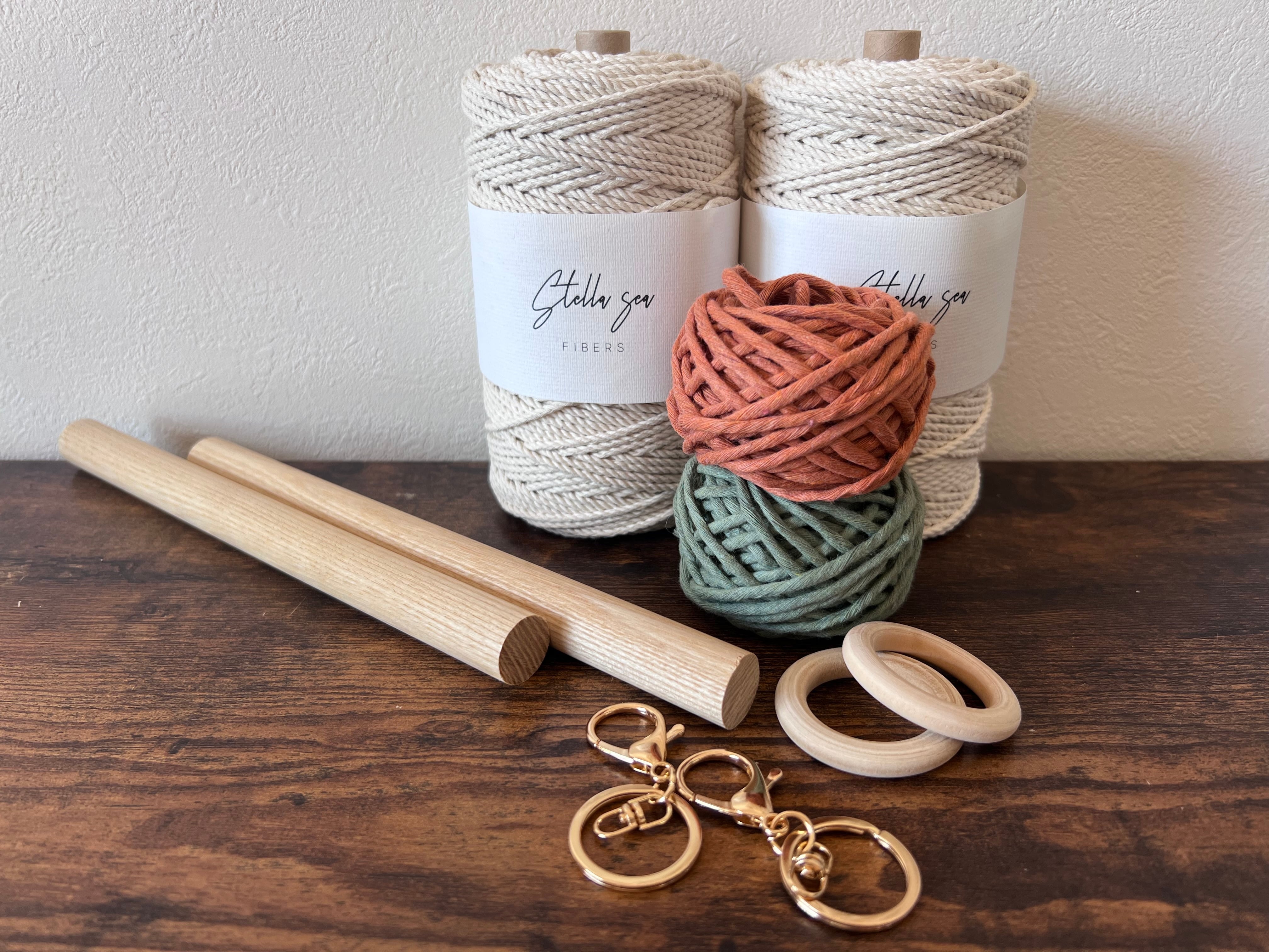 キットには、紐・ナスカン・タペストリー用の木が含まれています。PDFの道具リストもお渡ししますので、お手持ちのもので代用できる部分は自由に調整してください。